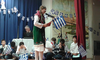 Την Παρασκευή 24 Μαρτίου 2017 το πρωί, τα αγόρια και τα κορίτσια της Ε' τάξης του Σχολείου μας μάς παρουσίασαν μια πάρα πολύ όμορφη γιορτή για την Επέτειο Εορτασμού της μεγάλης Επανάστασης της 25ης Μαρτίου 1821!!! Φορώντας όλοι ασπρογάλανα ρούχα μας είπαν ιστορικά ποιήματα για την εποχή εκείνη, μας εξιστόρησαν τα γεγονότα και χόρεψαν και τραγούδησαν παραδοσιακά τραγούδια!!!